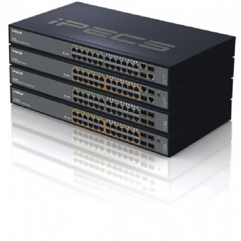 iPECS ES-4526G/ES-4550G, 8 adet stack edilebilir, 24 v4 48 port swictler, 384 Gigabit trafik ve 16 adet 10G porta sahitir.